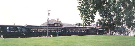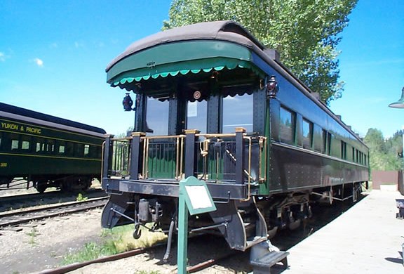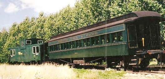 At the Park, she pulls three ex-CPR coaches and a caboose fitted